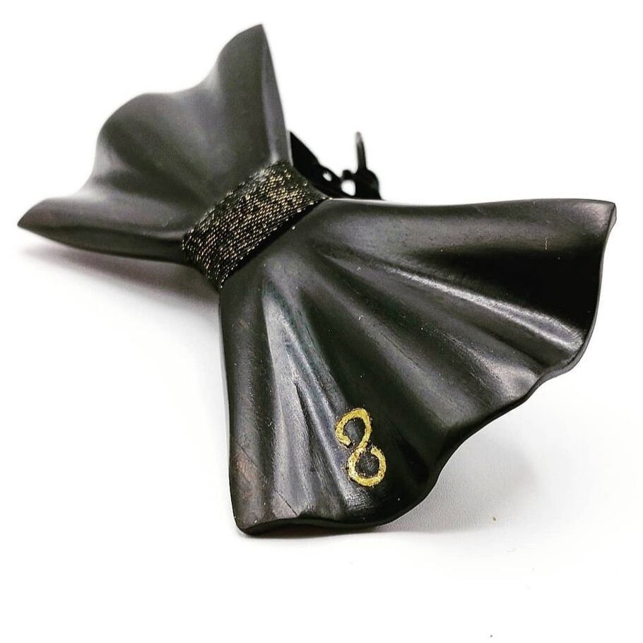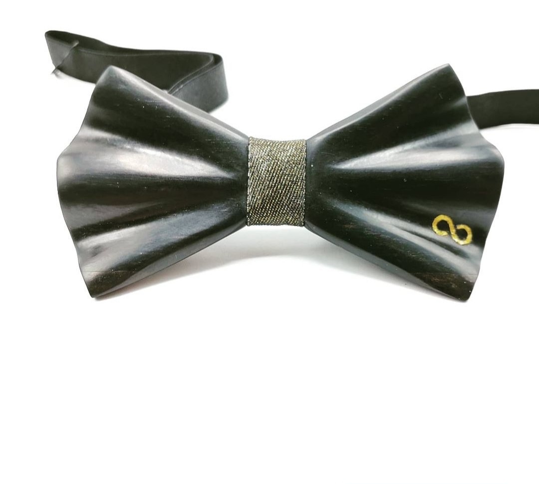 Scopri l’eleganza senza tempo del nostro papillon in legno di ebano, arricchito da un inserto in raso nero e oro. Il logo in foglia d’oro fatto a mano aggiunge un tocco di lusso e artigianalità, rendendo questo accessorio unico e raffinato.